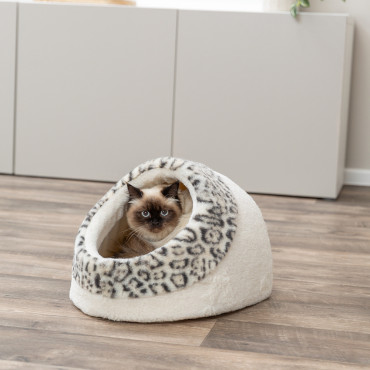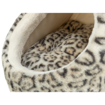 Cama com padrão leopardo, para cães e gatos.