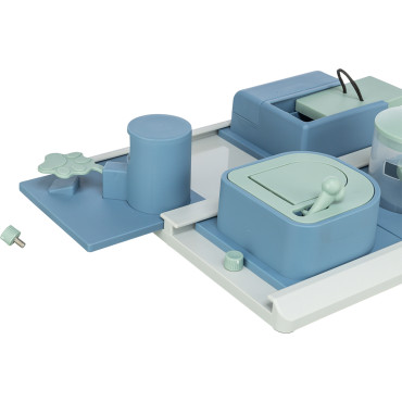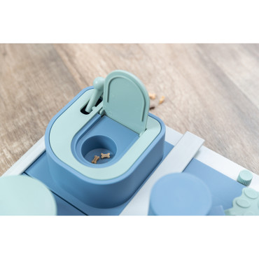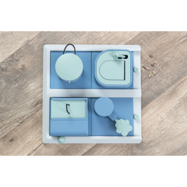 - O cão obtém a sua recompensa utilizando diferentes técnicas para aceder aos esconderijos