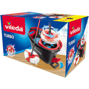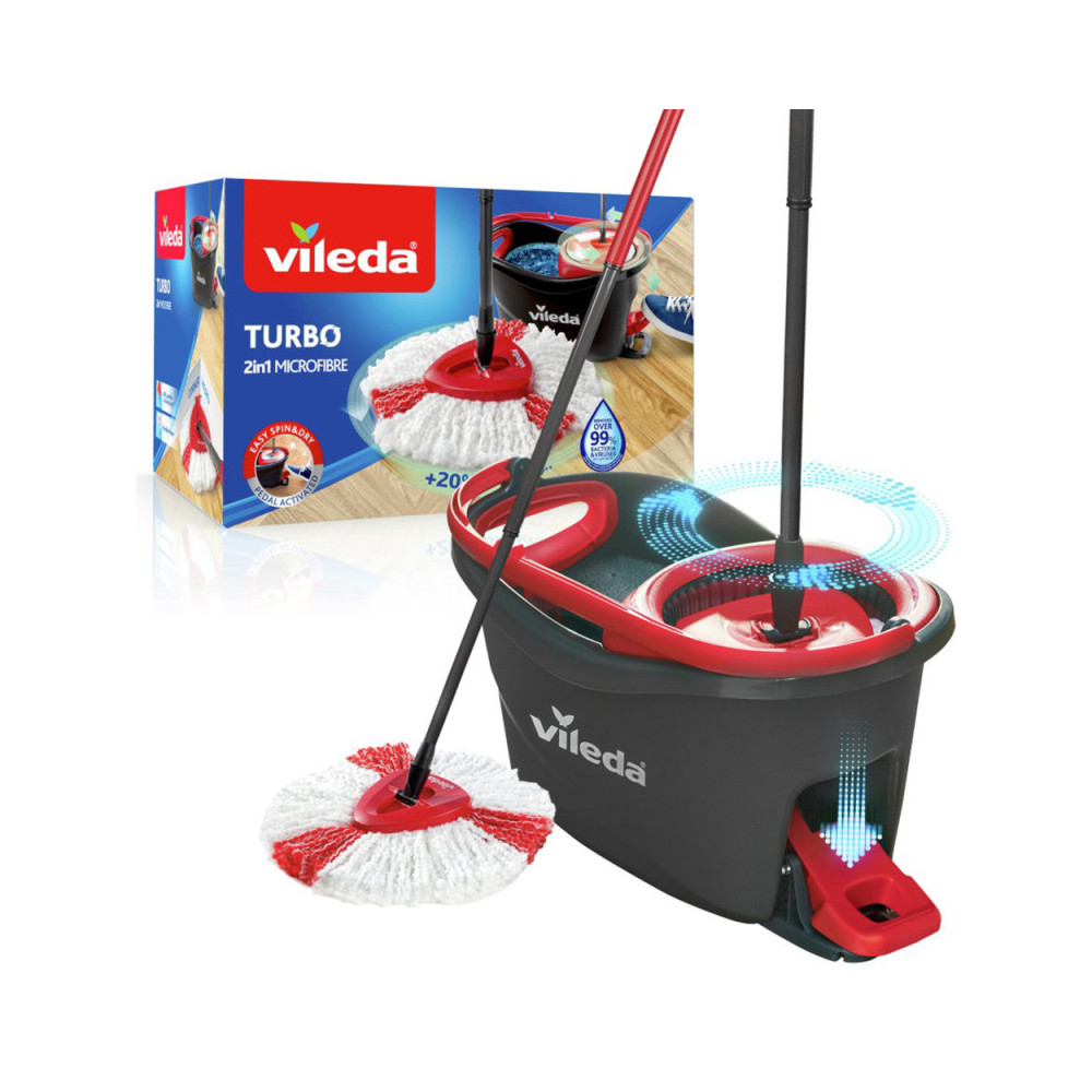 O Turbo Smart da Vileda é um balde com pedal e esfregona rotativa para uma limpeza fácil com menos esforço. É composto por um sistema de centrifugação que é accionado pelo pedal do balde e por uma esfregona 100% microfibras e poliamida 2 em 1 com cabo tripartido.