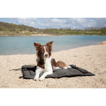 Manta de viagem fácil de transportar, com base antiderrapante, cobertura e enchimento de poliéster, para cães.