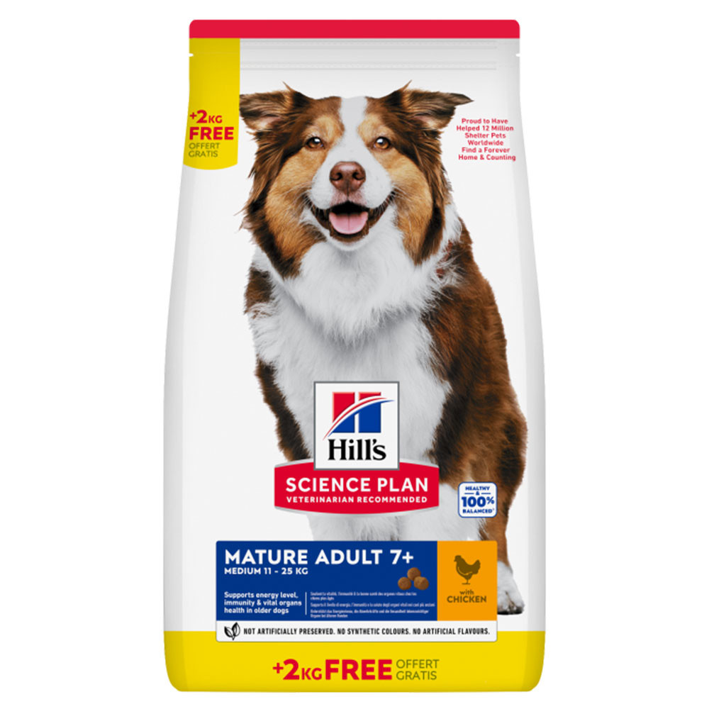Hill's Mature Adult 7+ Medium é formulado para as necessidades específicas de envelhecimento. Fornece uma nutrição de fácil digestão para apoiar níveis de energia e atividade.
