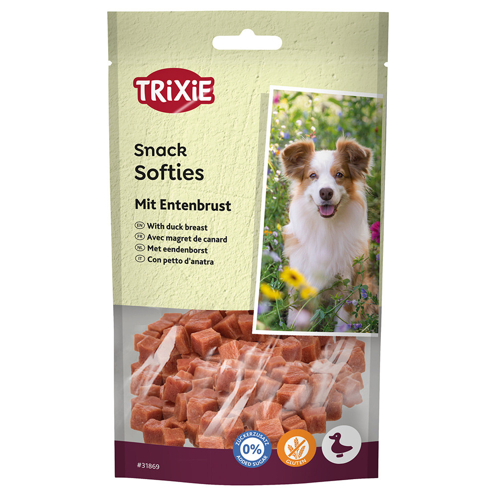 Os snacks Trixie Premio Duck Softies são ideais para dar ao animal entre as refeições. Possuem um alto teor de carne (64%), sendo ricos em proteínas. Estes snacks não contêm glúten, pelo que ajudam a reduzir as sensibilidades alimentares do animal.