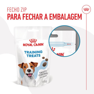 Royal Canin Training Treats são snacks para cães com mais de 6 meses, que ajudam a ensinar os comandos básicos ou truques avançados. Os snacks contêm DHA, bem como vitaminas C e E para ajudar a apoiar uma função cerebral saudável desde cachorro até tornar-se sénior. Com menos de 3 calorias por unidade, estas recompensas com um teor calórico reduzido são concebidas para ajudar a manter a saúde do seu cão, recompensando-o ao mesmo tempo pelo bom comportamento.