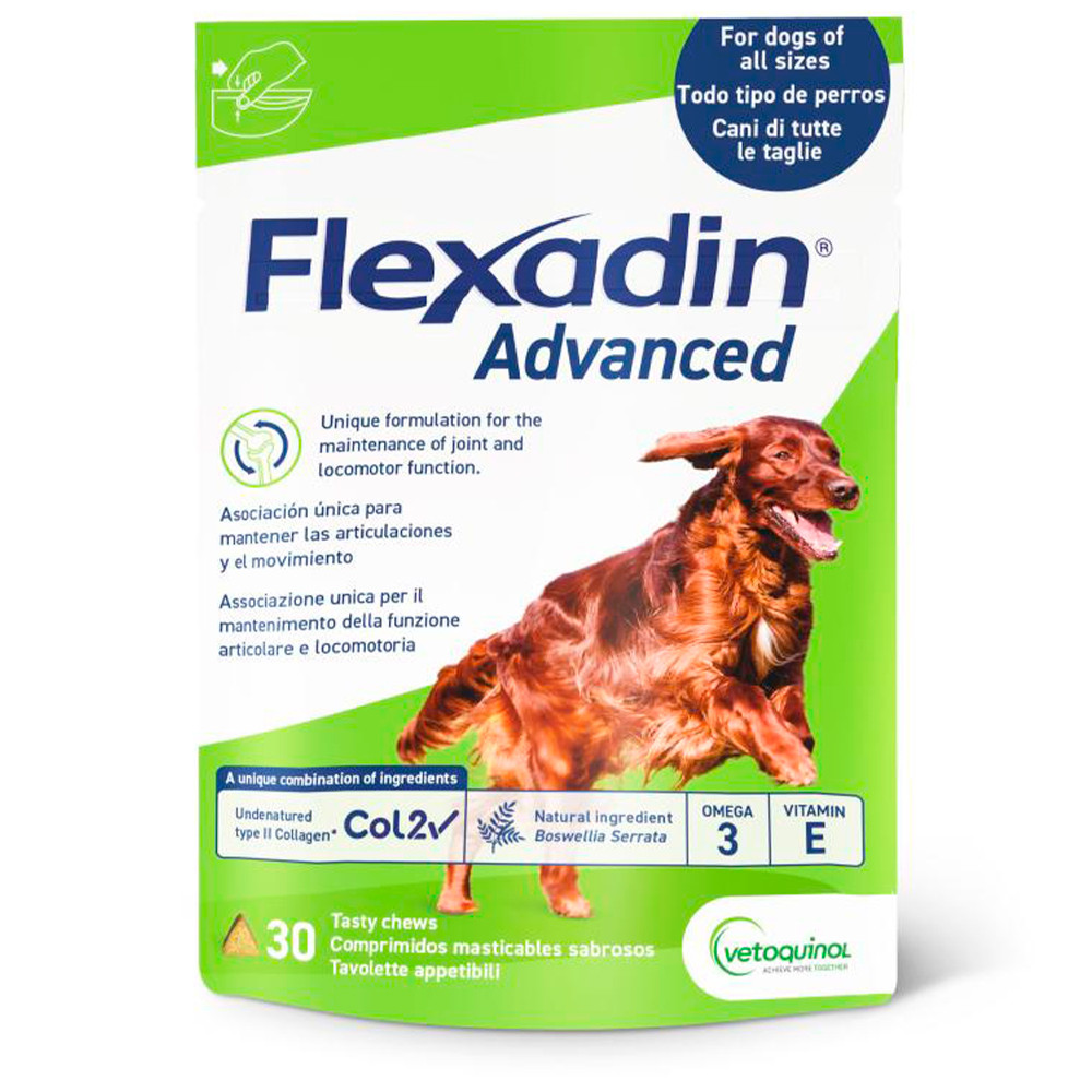 Flexadin Advanced é um alimento dietético complementar para cães, para apoio ao metabolismo das articulações no caso de osteoartrite.